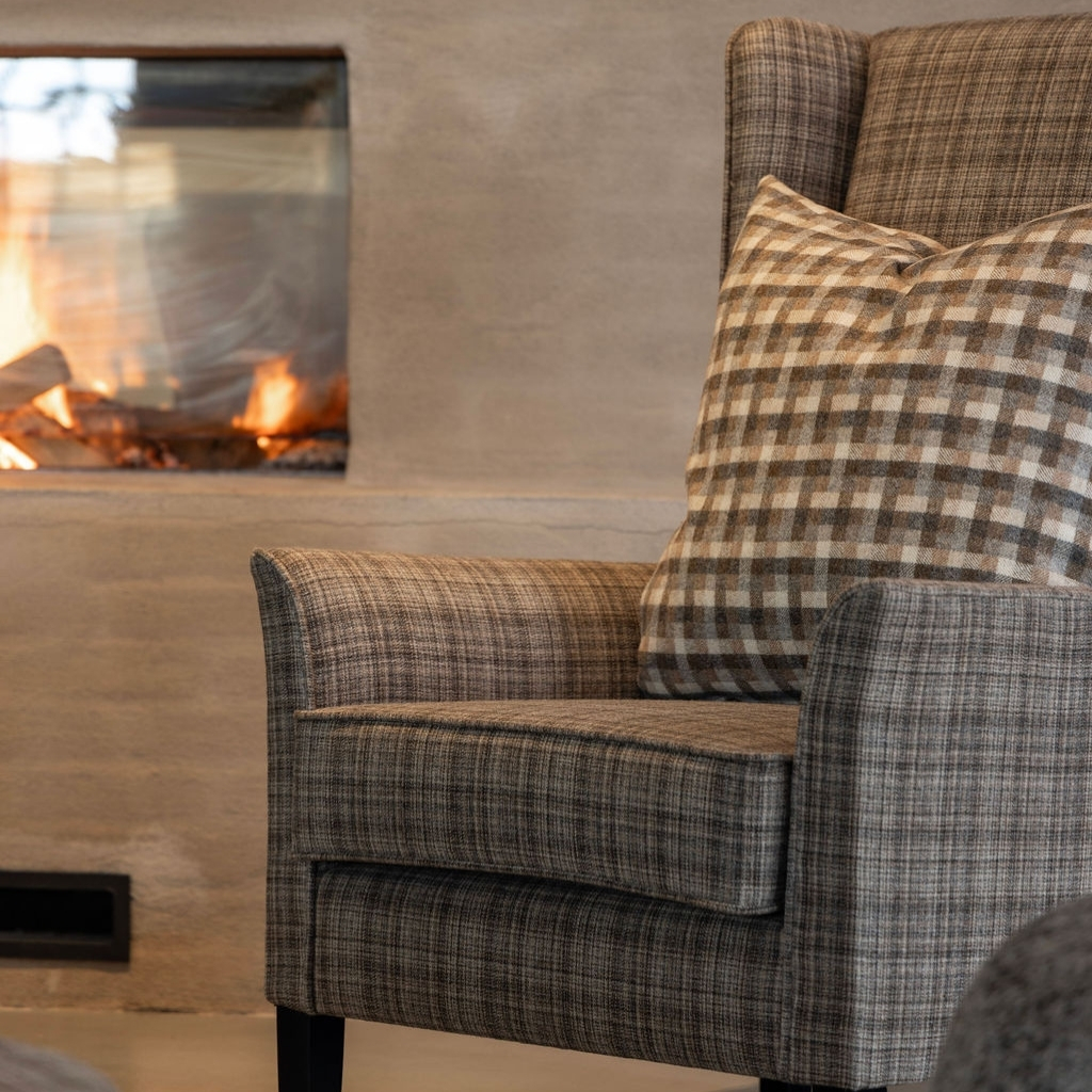 Un elegante sillón que combina la comodidad clásica con la sofisticación moderna. El respaldo alto y las esbeltas alas crean una silueta acogedora, mientras que el generoso cojín del asiento con ribetes decorativos le aporta un toque refinado y exclusivo. Tapizado en una suave tela tejida, este sillón ofrece una sensación de lujo, duradera y cómoda. Las patas rectas de madera proporcionan una base robusta y crean un hermoso contraste con la tapicería textil. Una costura oculta a lo largo de los contornos del sillón refuerza su estilo a medida y realza la impresión general. Un asiento atemporal que irradia calidad y un diseño cuidado, ideal para quienes buscan comodidad y un toque distintivo para su hogar. Color: Marrón a cuadros Callum.