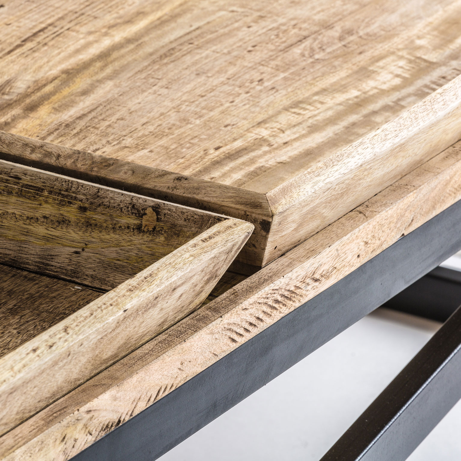 Reimagina tu salón con la moderna Mesa de Centro Newak de VICAL home. Construida en hierro y complementada con madera de mango sus dimensiones de 162x60x44cm la hacen espaciosa y elegante. Las bandejas incorporadas ofrecen funcionalidad adicional haciendo de esta mesa de centro con bandejas el equilibrio perfecto entre diseño y utilidad.