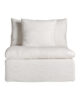El Módulo Sofá Central Agde de VICAL celebra la pureza de las líneas art déco con un diseño versátil y luminoso. El tapizado blanco en lino, combinado con algodón y espuma, crea una sensación envolvente de suavidad.