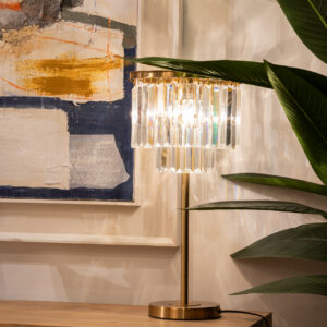 LAMPARA SOBREMESA CRISTAL METAL DORADO 30x30x60 CM