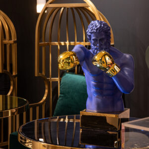 BOXEADOR RESINA/METAL AZUL 33x56x56 CM