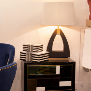 LAMPARA SOBREMESA METAL MDF NEGRO 40x40x68 CM