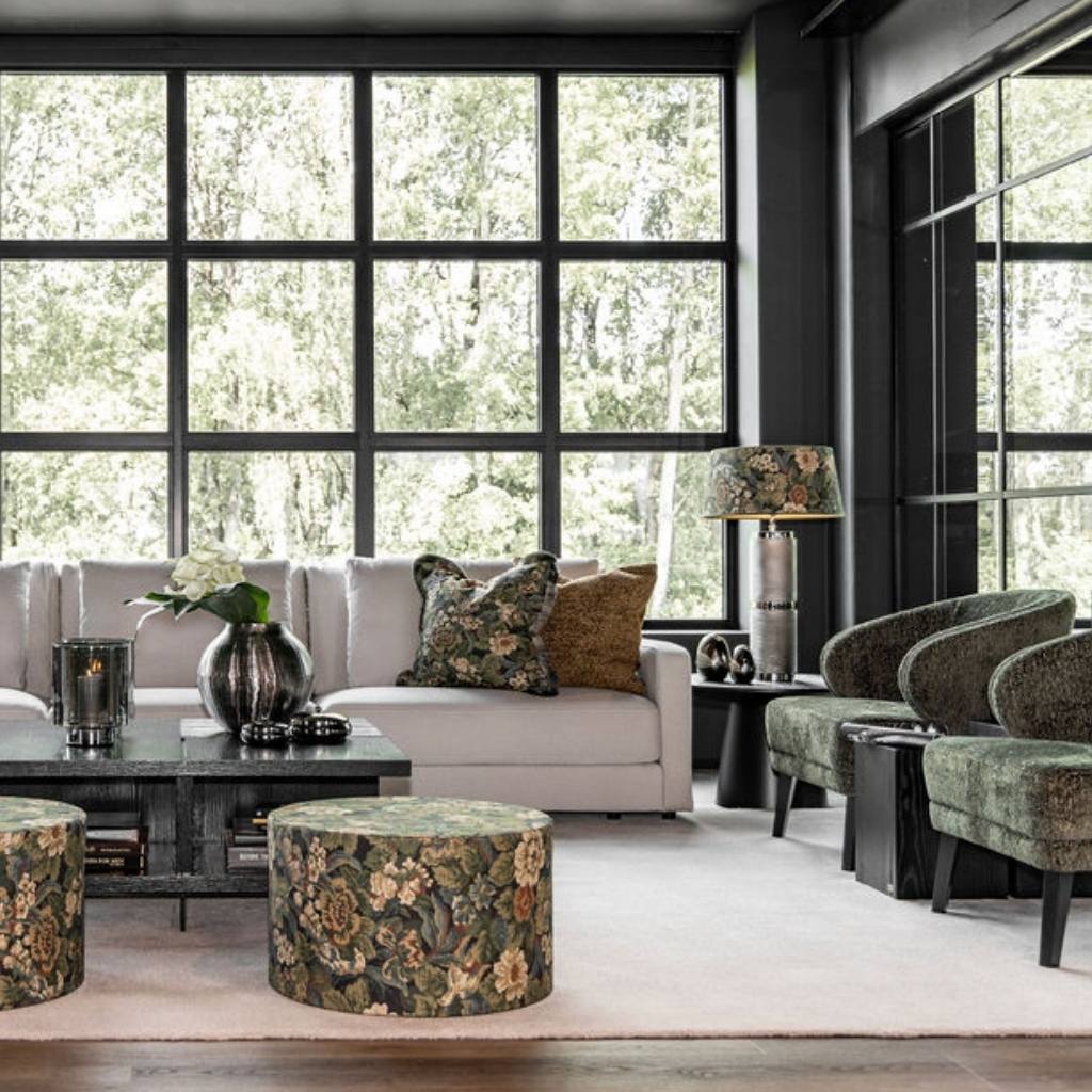 An exclusive armchair that blends modern design with artistic textiles. The unique patterned upholstery on the outer shell adds character, while the solid-colored interior creates balance and a refined overall impression. With its embracing shape and softly padded seat, the chair offers excellent comfort – perfect for both social spaces and quiet corners of the home. The slightly flared wooden legs add visual lightness and provide a stable, sophisticated foundation. Thanks to its generous shape and enveloping backrest, this armchair quickly becomes a favorite – ideal as a statement piece in the hallway, bedroom, or as an inviting accent in the living room. Available in multiple color variations to suit your interior style. Color: Pietra forest