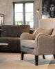 Timeless armchair with a classic shape and high comfort – an elegant addition to the living room, bedroom, or reading nook.The softly contoured backrest, rounded armrests, and removable seat cushion provide both style and support. The neutral, woven fabric in a warm grey tone makes the armchair easy to match with a variety of interior styles – from modern to traditional. Dark-stained wooden legs give a stable impression and enhance the classic look. The armchair comes with a matching decorative cushion that offers extra support and a welcoming touch. Perfect as a standalone piece in a reading corner or as a pair forming part of a sofa set. Color: Sway natural