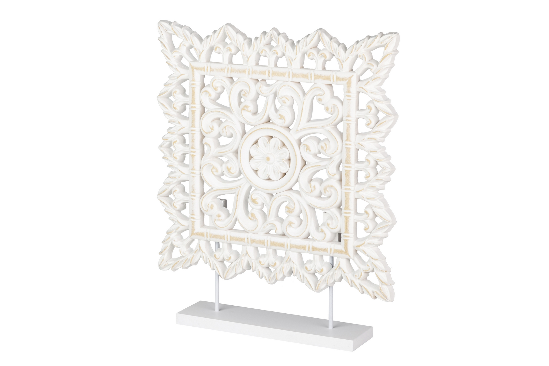 ADORNO MESA MADERA CALADA BLANCA 40x8x48 CM