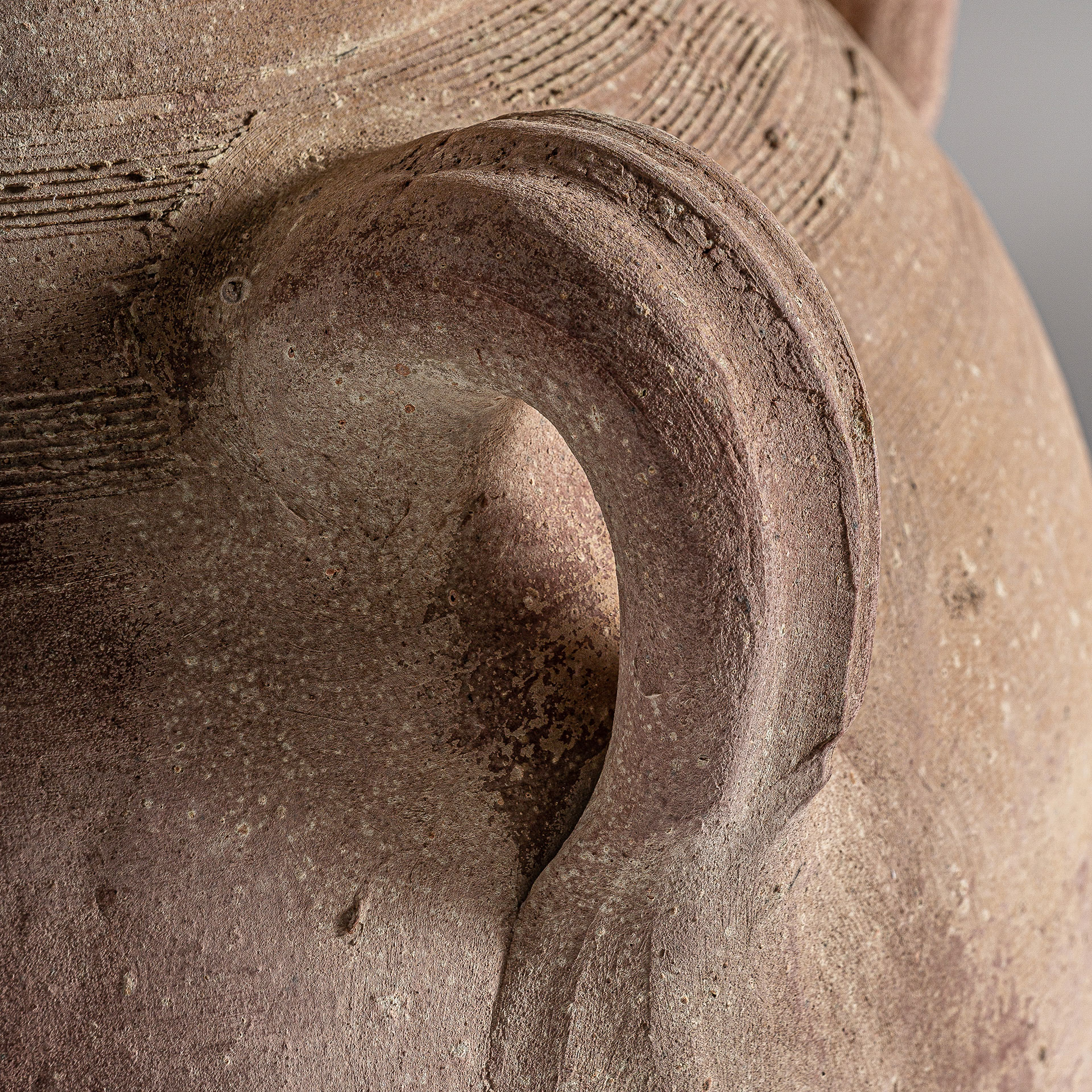 Con su acabado envejecido y forma generosa el ánfora Kansara aporta volumen y carácter. Una pieza que transforma el ambiente con fuerza visual.