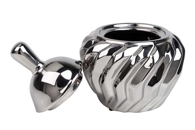 BOMBONERA CERAMICA PLATEADO 16x16x20 CM