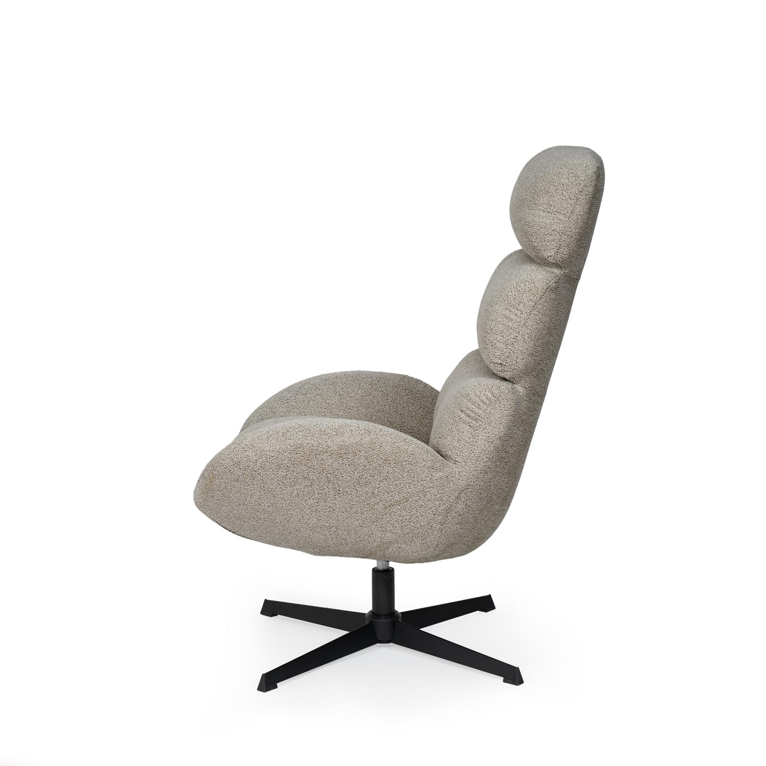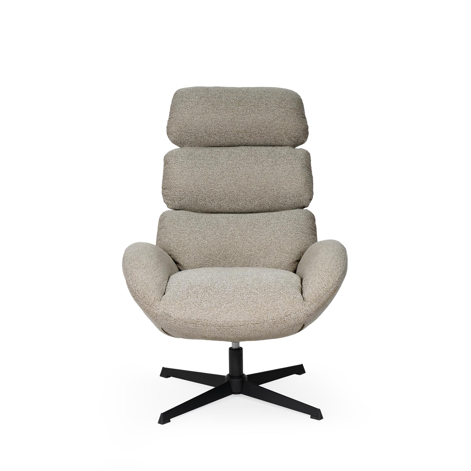 La butaca PAULINE combina diseño envolvente y máximo confort en una pieza de líneas suaves y estructura ergonómica. Su respaldo alto dividido en tres secciones acolchadas proporciona un excelente soporte para la espalda, el cuello y la cabeza, mientras que sus amplios brazos invitan a disfrutar de largos momentos de descanso. Tapizada en un tejido suave disponible en tonos beige, gris y taupe, se adapta fácilmente a diferentes estilos decorativos, desde espacios contemporáneos hasta ambientes más clásicos o relajados. Su base metálica negra en forma de estrella no solo aporta estabilidad, sino que integra un mecanismo giratorio de 360º, que añade dinamismo y funcionalidad al conjunto. Perfecta para salones, zonas de lectura o espacios de relax, la butaca PAULINE es aún más completa cuando se combina con el reposapiés DIDIER, diseñado a juego para ofrecer una experiencia de descanso superior.