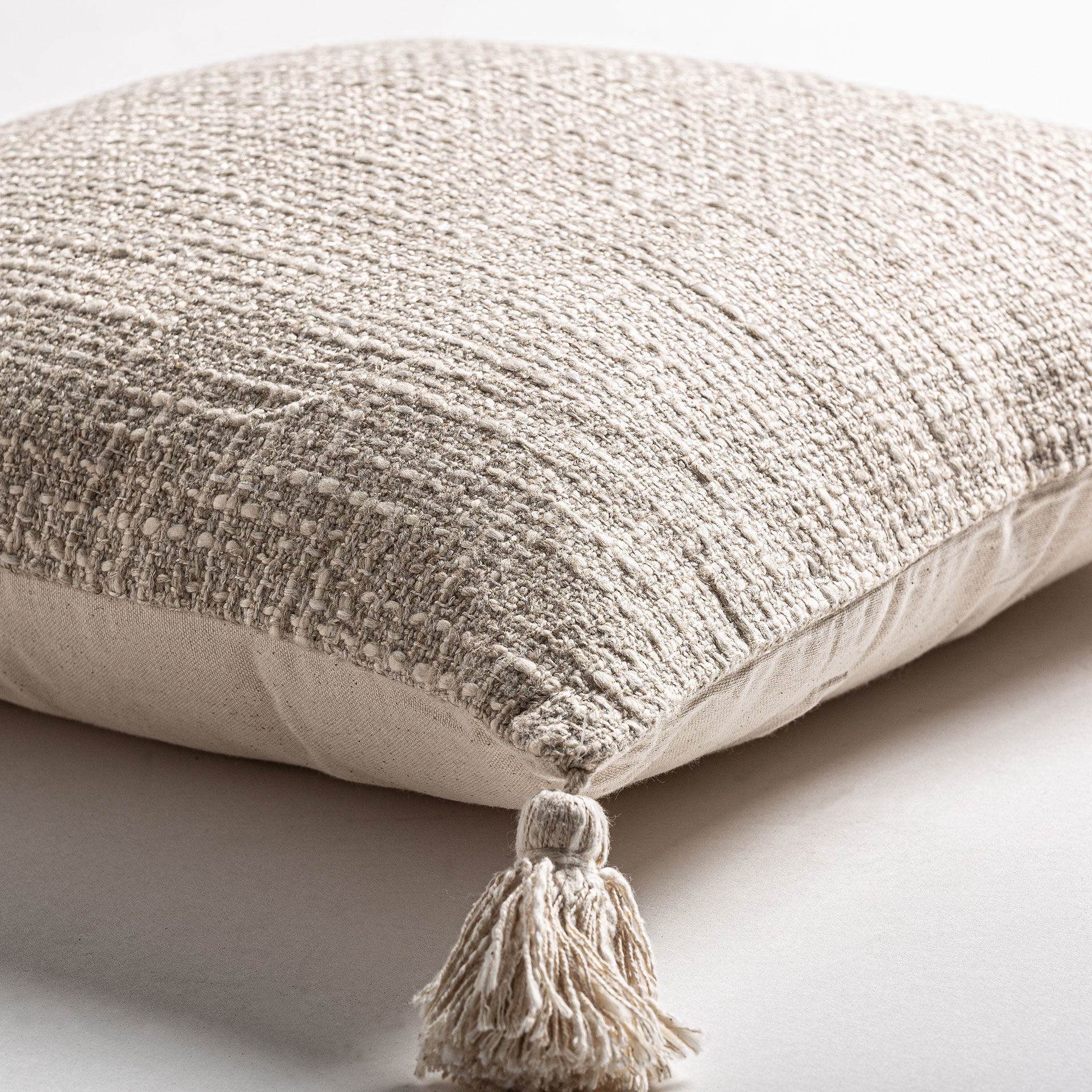 El Cojín Ander destaca por su estilo provenzal y su textura suave en lino beige combinado con poliéster. Sus borlas decorativas aportan un toque natural y acogedor convirtiéndolo en un complemento perfecto para espacios tranquilos y luminosos.