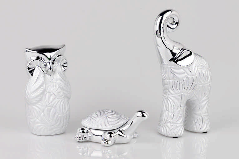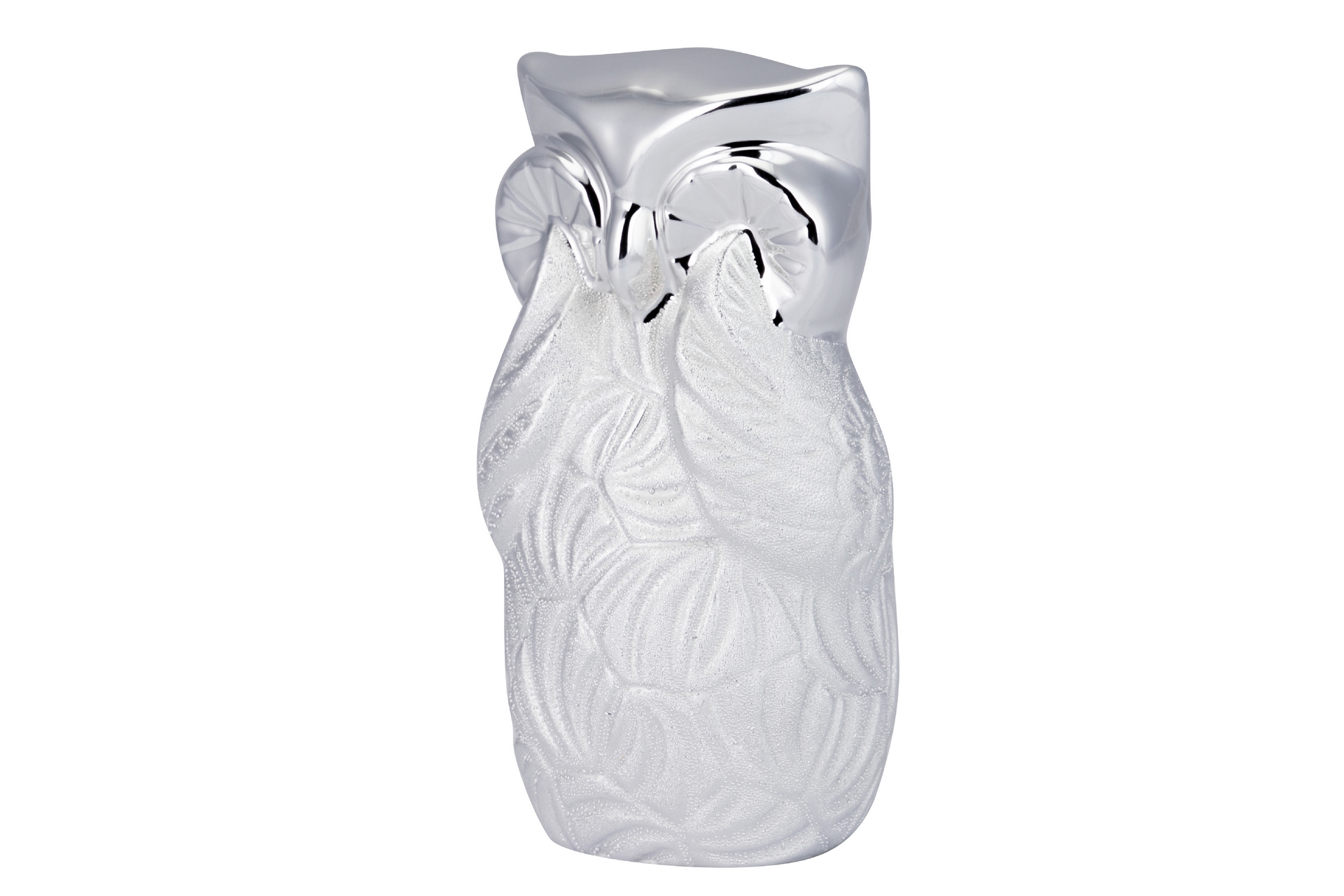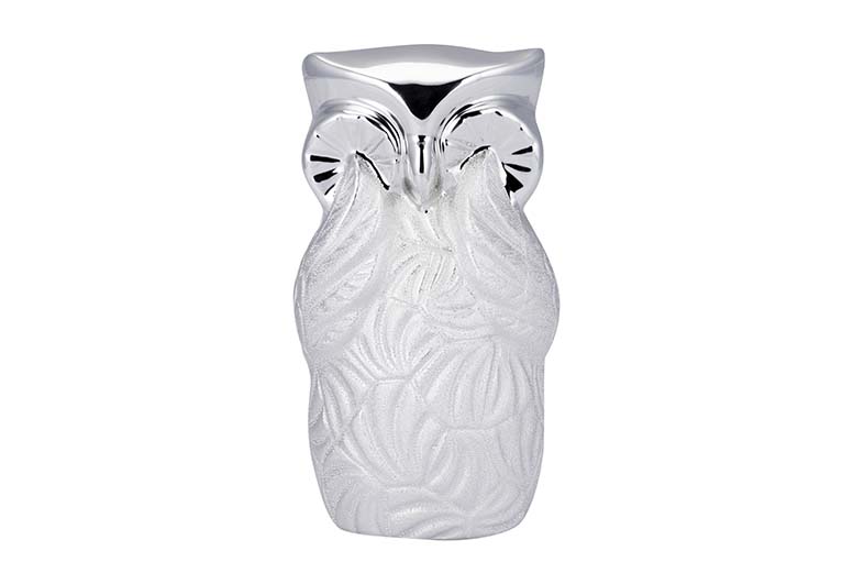 FIGURA BUHO CERAMICA PLATEADA 10x9x18 CM