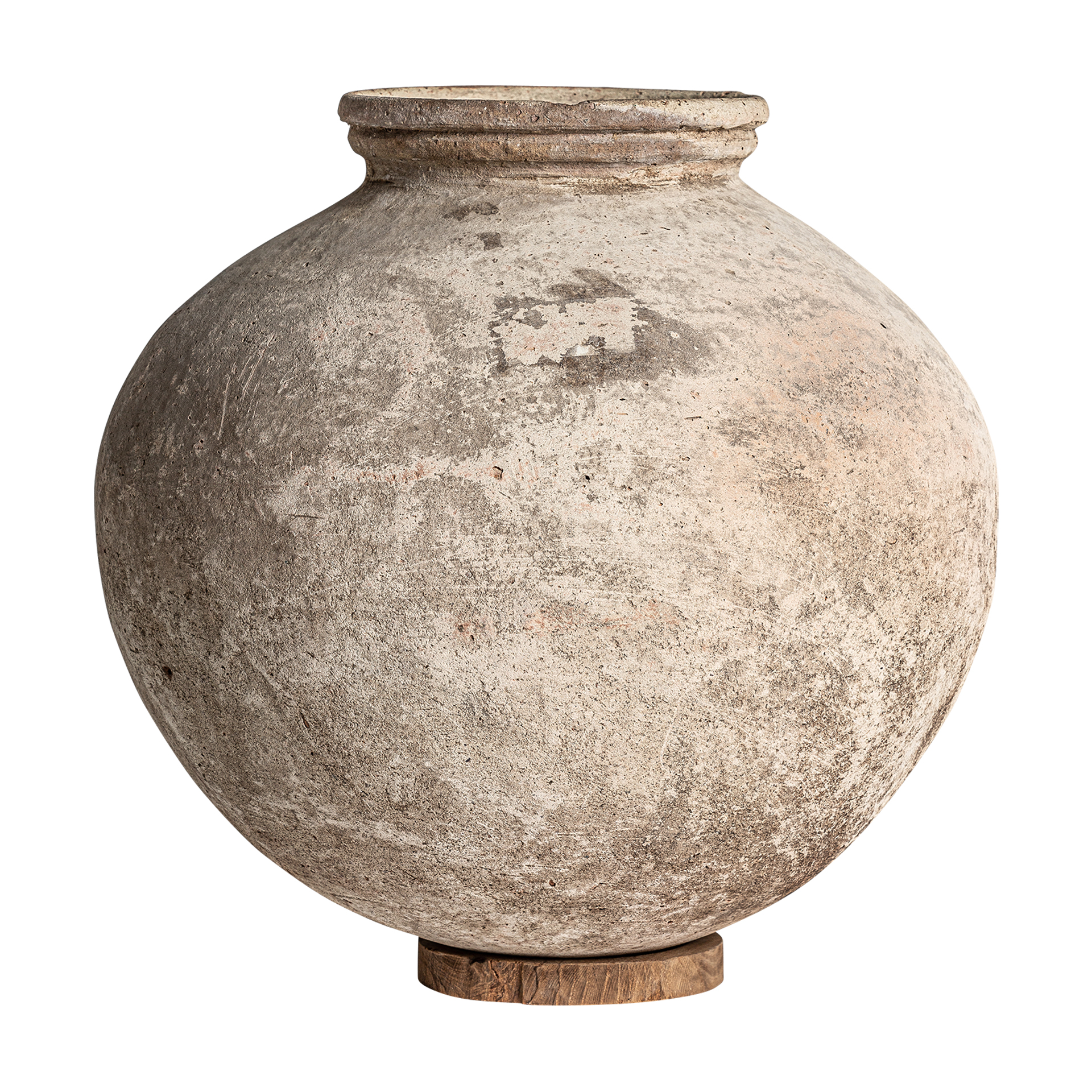 El jarrón Phelles en terracota crema envejecida y base de madera destaca por su silueta robusta y su acabado artesanal. Una pieza de VICAL que transforma el ambiente con naturalidad.