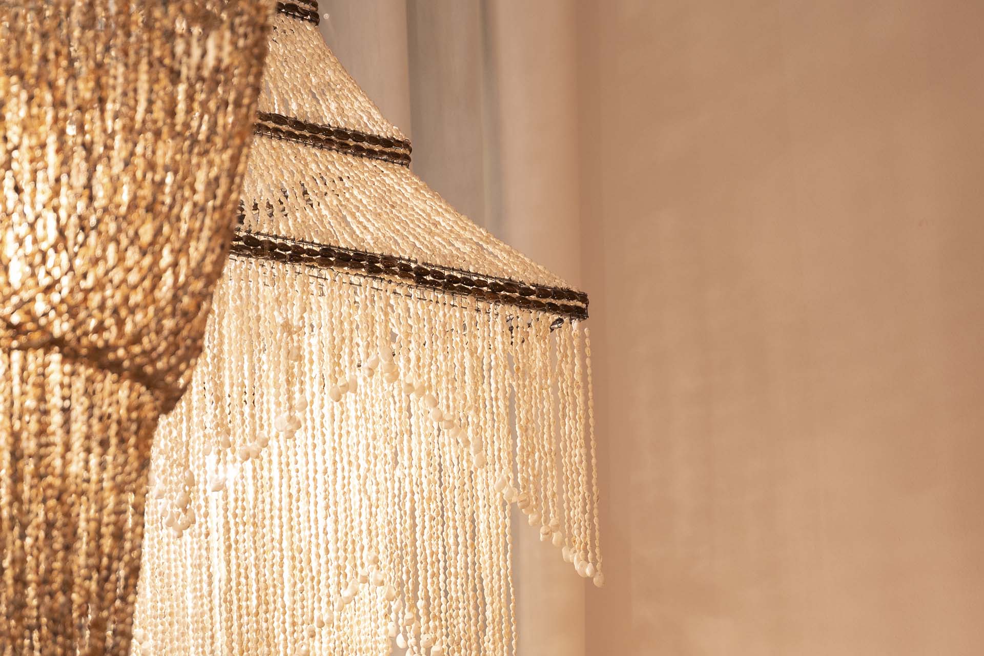 LAMPARA TECHO CONCHAS BLANCAS 25x25x90 CM