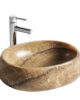 Fuerza y sutileza en equilibrio. El lavabo Magland está realizado en ónix marfil transmitiendo calma elegancia y una conexión auténtica con la materia prima.