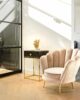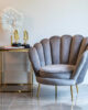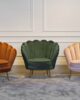 Lounge chair Perla khaki velvet: Perla armchair is the must-have for any interior! A velvet shell chair is super fun for the living room or bedroom. Available in green, khaki, pink, rust and stone.