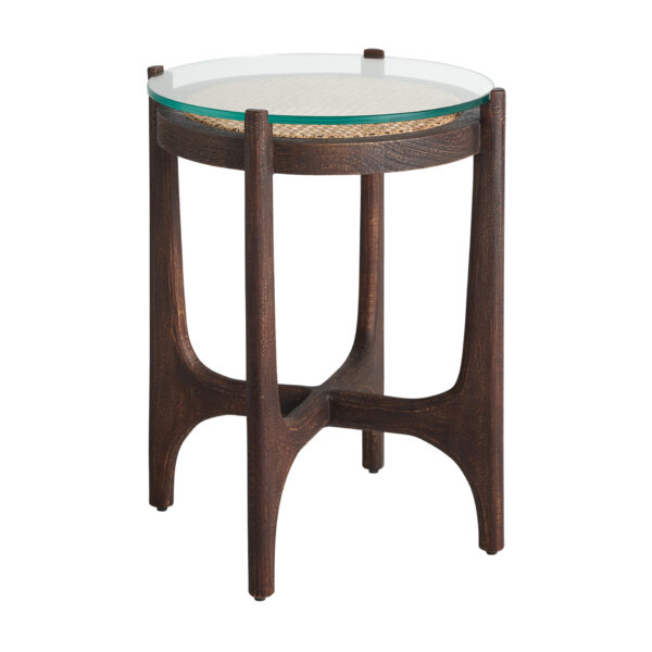 Experimenta la fusión de naturaleza y elegancia con la Mesa Auxiliar Nossen de VICAL home. Con madera de mango ratán y una superficie de vidrio en color marrón esta mesa auxiliar de ratán y cristal de 46x46x56cm ofrece una mezcla única de materiales que la convierten en el punto focal perfecto para cualquier espacio.