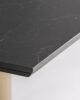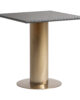Mesa bar Tasque de la marca VICAL con base en acero dorado y sobre porcelánico negro una propuesta elegante y resistente ideal para hostelería y espacios sociales.