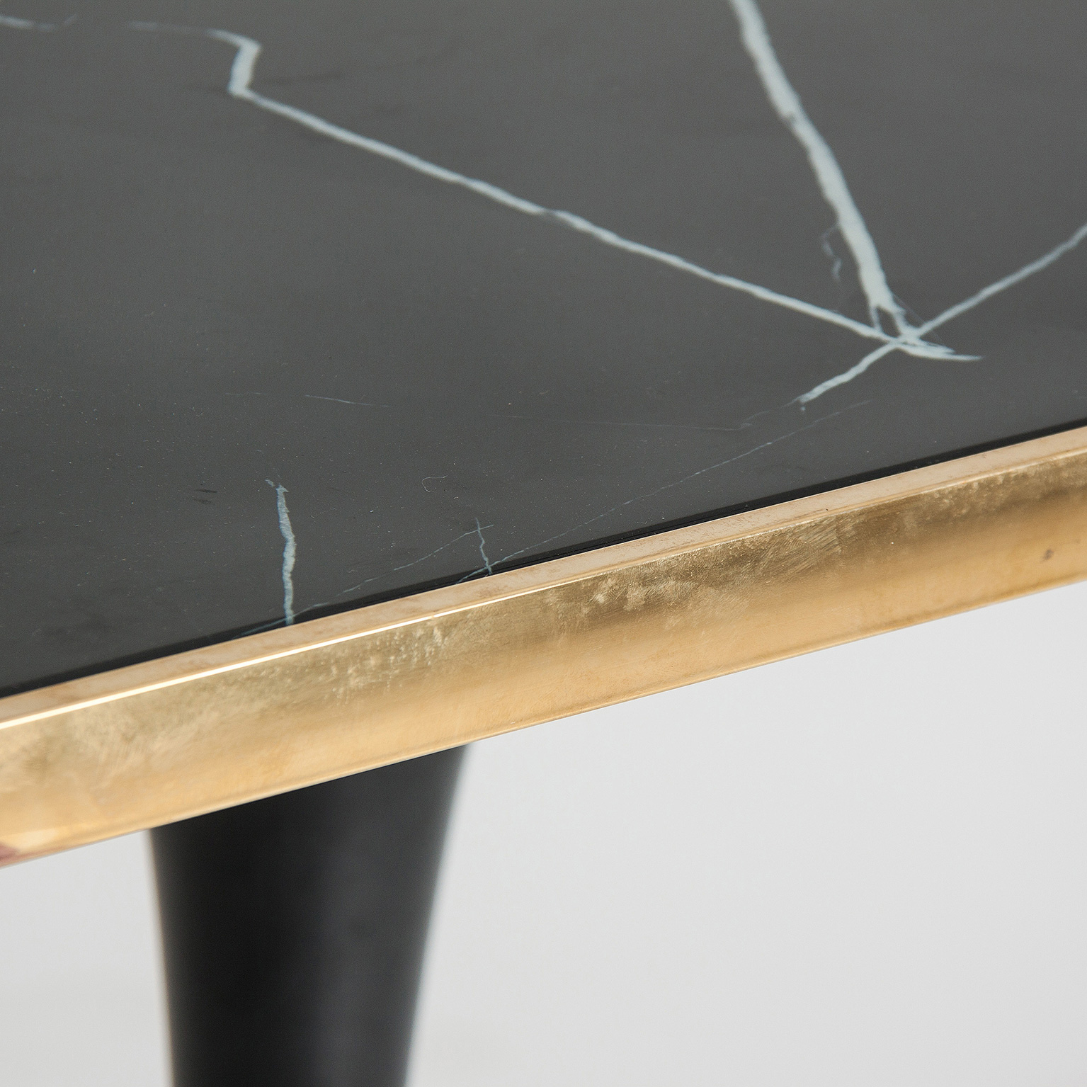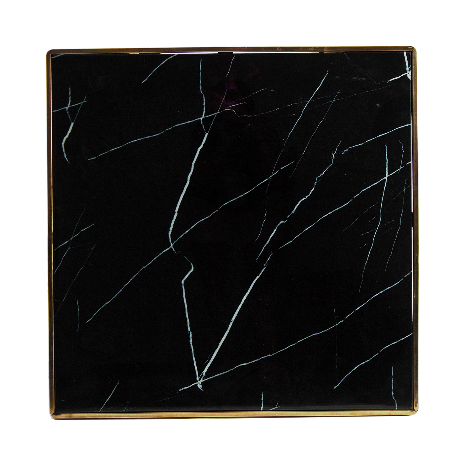 Estilo art déco en estado puro. Fabricada en acero negro con sobre en cristal tintado en marrón esta mesa cuadrada es una fusión de fuerza elegancia y glamour. Producto desmontable.