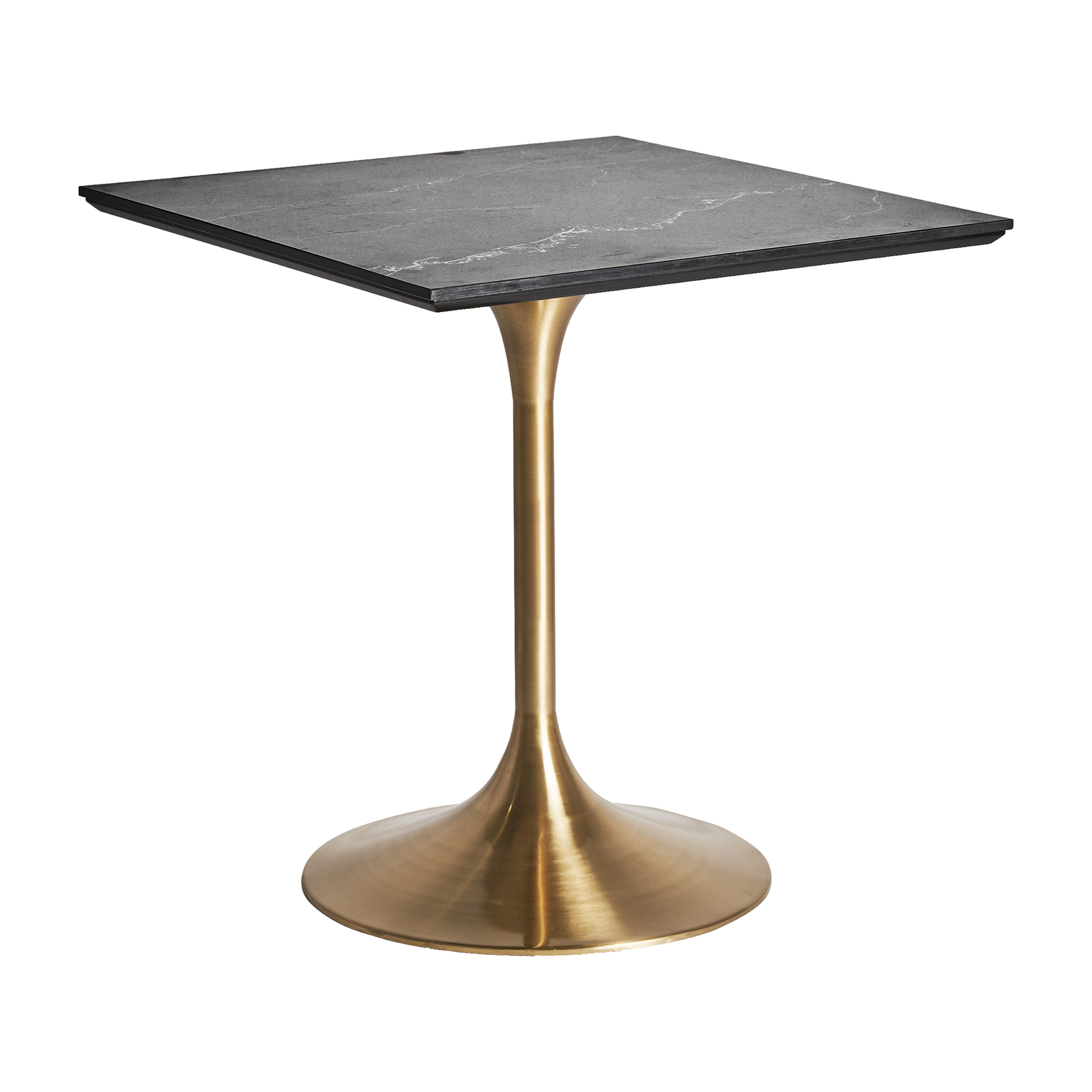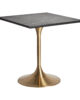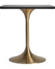 Esencia glam. Mesa alta en acero dorado con sobre en mármol sintético, ideal para rincones chic que buscan una estética brillante y sofisticada.