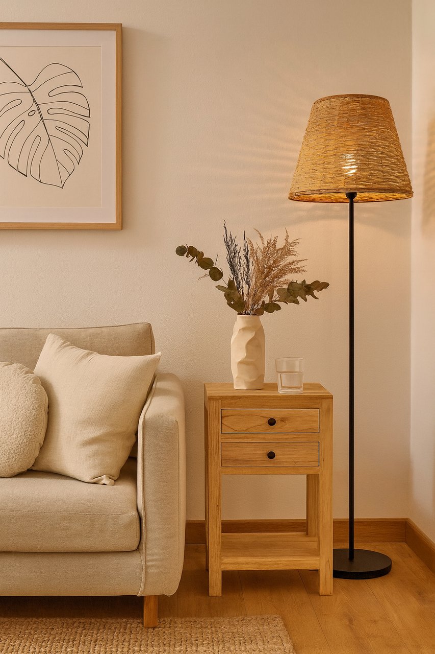 MESITA DE NOCHE 2 CAJONES MADERA MINDI 45x30x66 CM