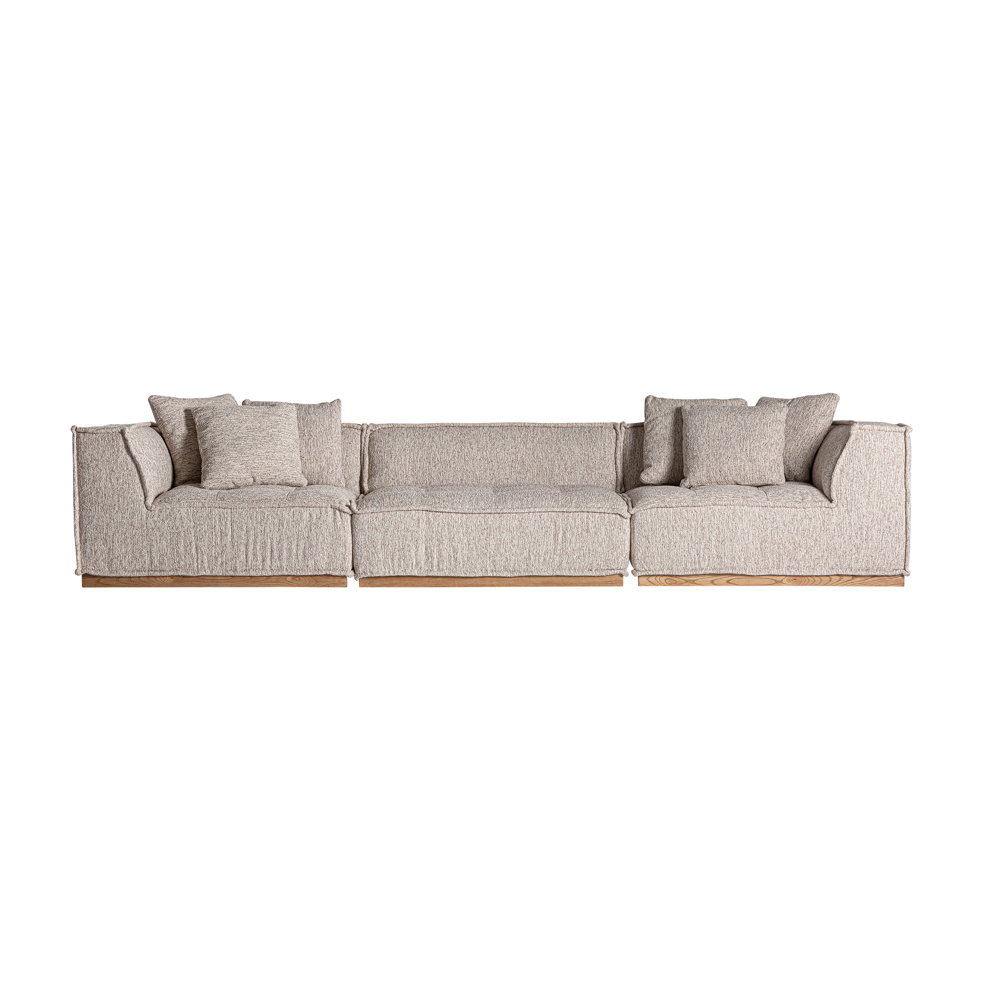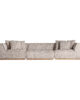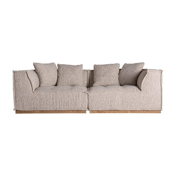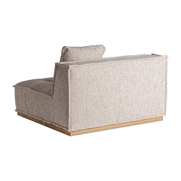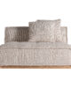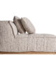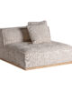 El módulo central Vittel tapizado en poliéster jaspeado beige y combinado con madera de pino natural completa la colección con una pieza versátil y desenfundable. Su diseño art déco y su textura suave lo convierten en un elemento clave para composiciones modulares. VICAL lo propone para salones con estilo.