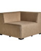 El módulo esquinero Herly elaborado en poliéster beige y estructura de aluminio marrón combina suavidad y resistencia en una pieza de líneas envolventes. Su diseño de inspiración colonial y su tapizado hidrófugo lo convierten en una opción ideal tanto para interiores como exteriores cubiertos. Una creación de VICAL que destaca por su sencillez y fuerza visual.