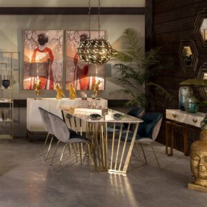 MESA COMEDOR MDF METAL BLANCA DORADA 180x90x75 CM