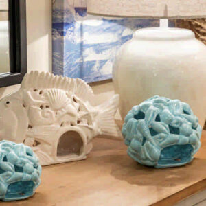 BOLA PORTAVELAS CONCHAS PORCELANA 13x13x12 CM