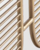 El hierro dorado y el cristal se entrelazan en el parabán Espira una pieza art déco que juega con la transparencia y la geometría. Su diseño desmontable permite adaptarlo a distintos espacios aportando ligereza visual y sofisticación. VICAL lo concibe como un elemento decorativo con alma arquitectónica.