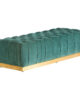 Un toque final lleno de estilo. El pie de cama Lignitz de estilo art déco combina terciopelo verde con estructura metálica en oro y madera de mango. Relleno espuma.