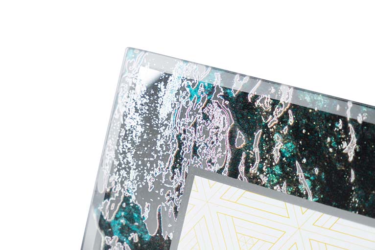 PORTAFOTOS CRISTAL IMPRESION NEGRO DORADO 10×15 CM