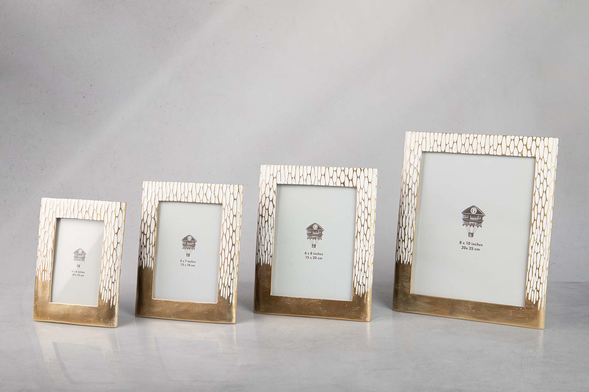 PORTAFOTOS RESINA DORADO BLANCO 13×18 CM