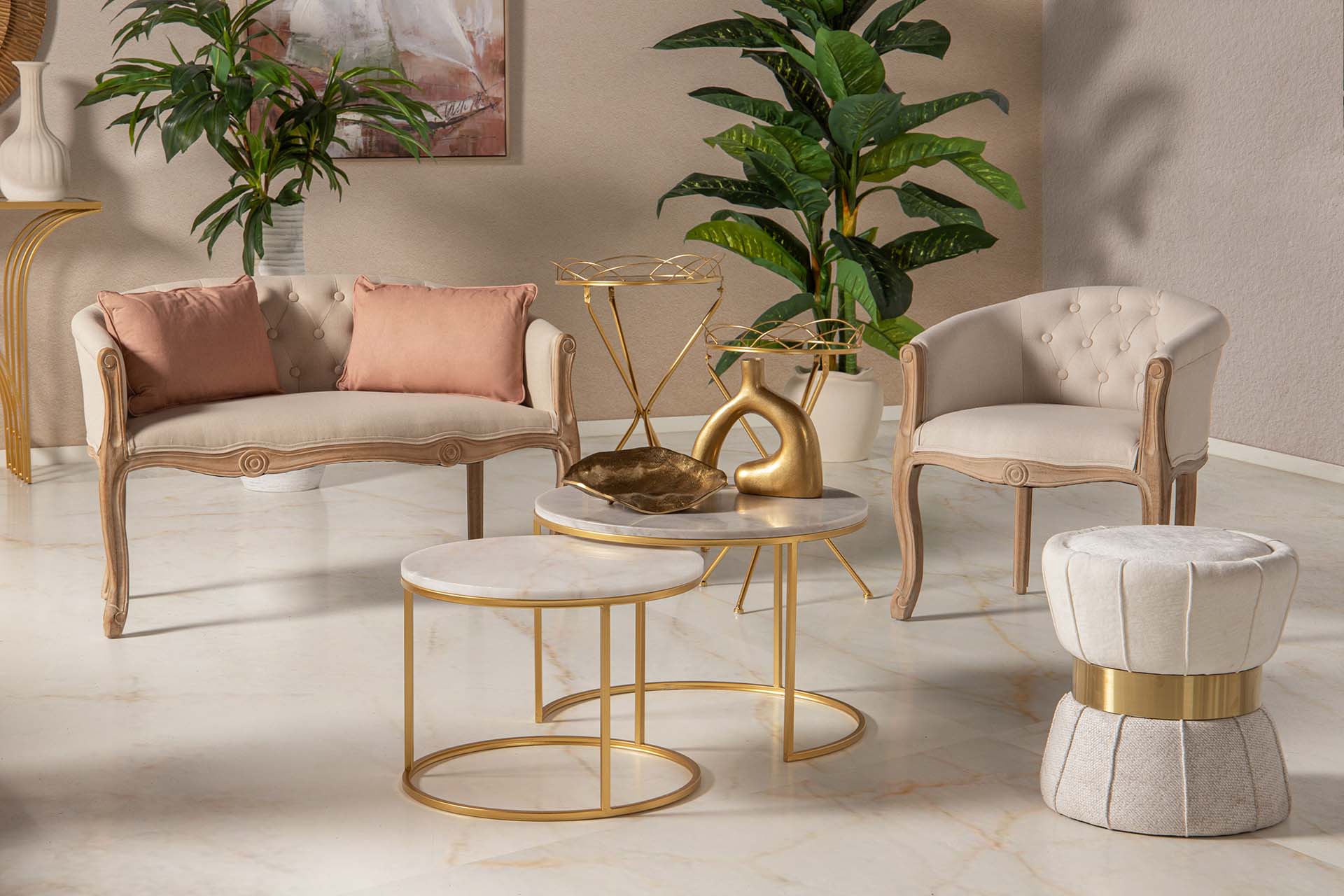 SET 2 MESAS METAL ESPEJO 44x39x74 42x39x63 CM