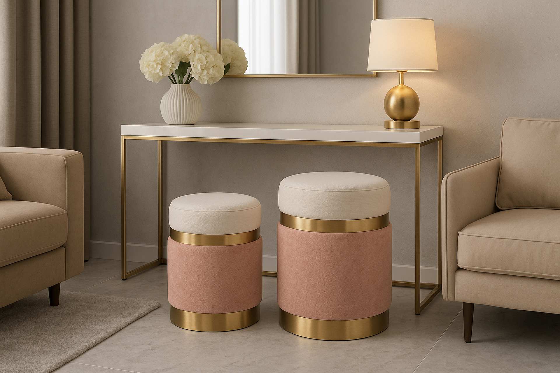 SET 2 PUFFS VELVET 36x36x44 31x31x38 CM