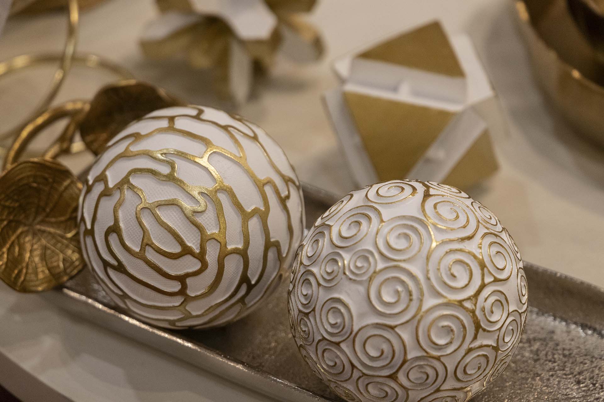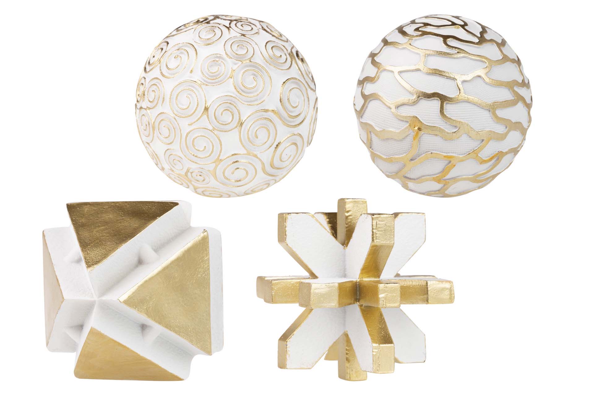 SET 4 BOLAS BLANCAS DORADAS 10x10x10 CM