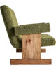 El sofá Creusot con estructura de pino reciclado y tapizado en poliéster verde reinterpreta el estilo art déco con un enfoque sostenible. Sus líneas generosas y su textura suave lo convierten en una pieza acogedora y elegante.