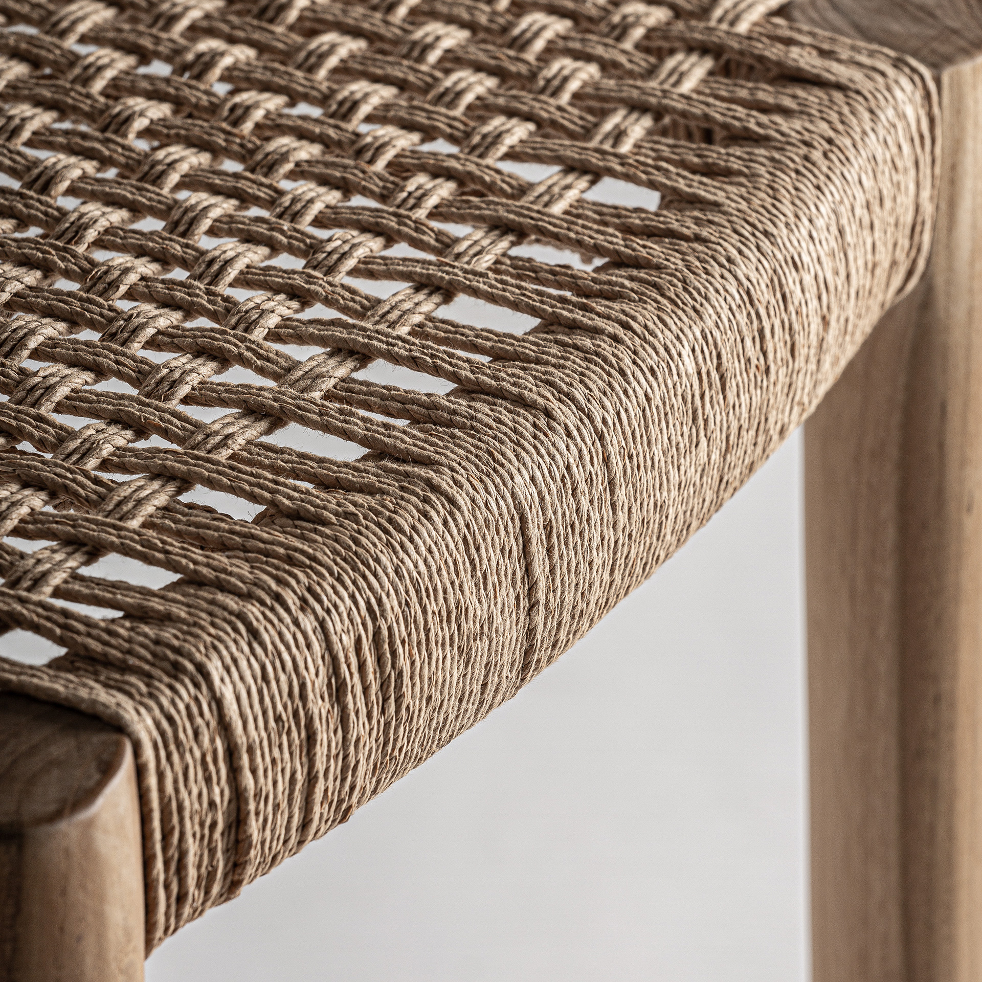Natural ligero y con carácter. Este taburete elaborado en madera de teka y fibra natural añade un toque orgánico y funcional a cocinas barras o terrazas interiores.